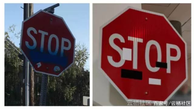 惡意行為者可以利用這些錯誤對依賴深度學習算法的系統進行對抗性攻擊。例如,在2017年,密歇根州華盛頓大學以及加州大學伯克利分校的研究人員表示,通過進行小幅調整來停止標志,他們可以使自動駕駛汽車的計算機視覺算法不可見。這意味著黑客可以強迫自動駕駛汽車以危險的方式行事并可能導致事故。如下面的例子所示,沒有人類駕駛員不會注意到“被黑”的停車標志,但神經網絡可能完全失明。
