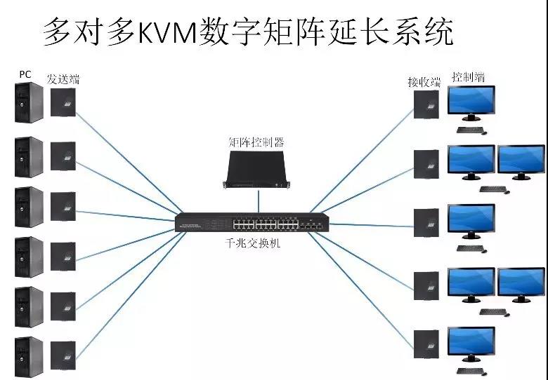 Rextron公司推出的網絡型數字KVM延長器,基于千兆網絡傳輸數據,可同步延長DVI或HDMI+USB+串口信號;配合KVM矩陣控制軟件,可實現一對一、一對多、多對一、多對多等多種KVM高清矩陣切換系統,產品廣泛用于大型指揮調度中心,如:國家電網、中國高鐵等。