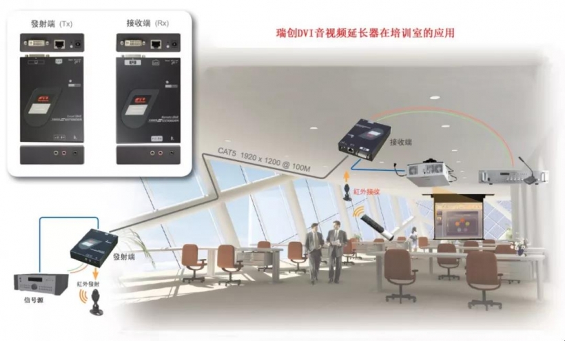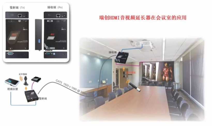 HDMI無線延長器是基于H.264壓縮技術,把10G的高清HDMI信號壓縮到20M帶寬以內,通過延長器發送端內置的雙頻(2.4G和5G)WIFI發送出去,配合WIFI接收功能的延長器接收端,可實現1對1、1對多的HDMI高清信號無線延長和廣播功能。特別適用于不方便布線的會議室、展覽室、教室、展覽等場所。
