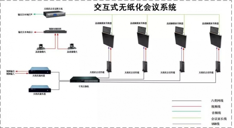 無紙化會議系統是使用現代通訊技術、音頻技術、視頻技術、軟件技術,通過文件的電子交換實現會議的無紙化。其特征是:文件傳輸網絡化,文件顯示電子化,文件編輯智能化,文件輸入輸出可控化。