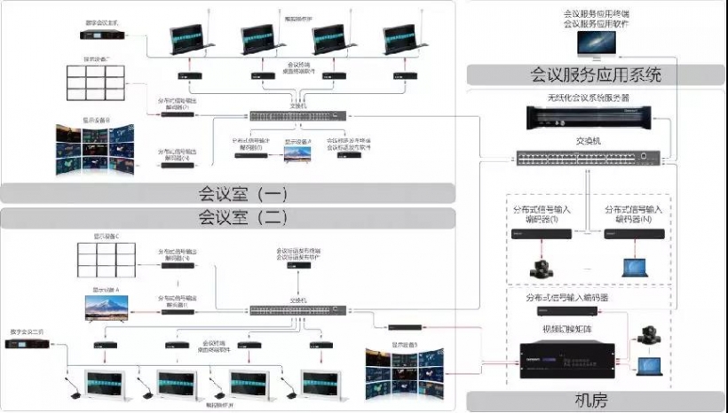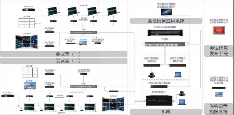 無紙化會議辦公以其智能、環保、高效的優勢,被越來越普及到各行業的政務辦公系統當中。艾索電子新概念無紙化會務系統,以分布式音視頻編解碼技術、全IP化網絡化架構設計,整合電子標語、候會播報、信息發布、會議服務,打造分布式、全功能、新概念無紙化會務系統應用方案。