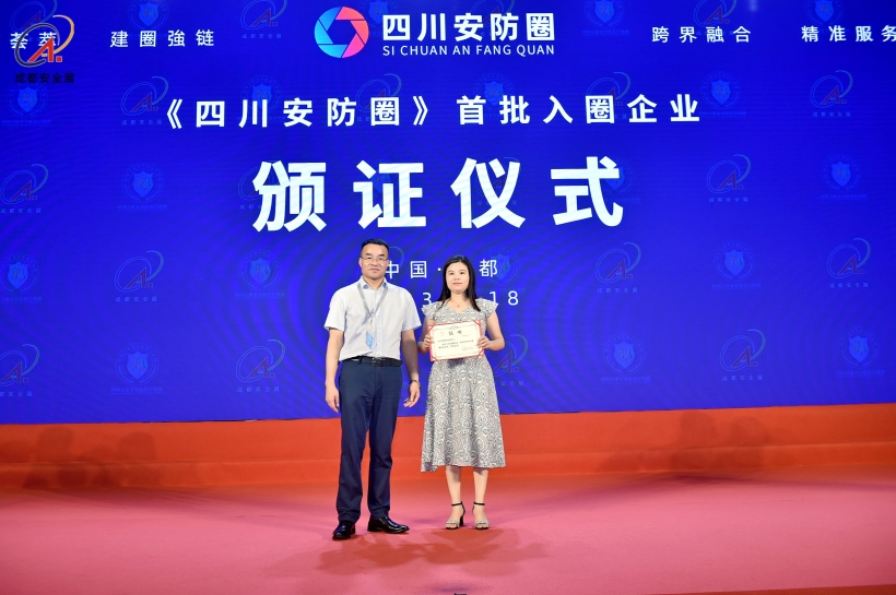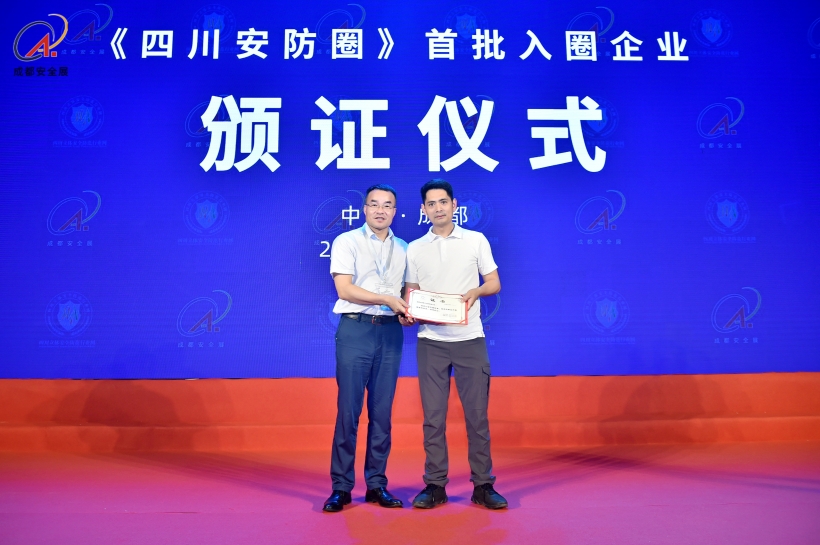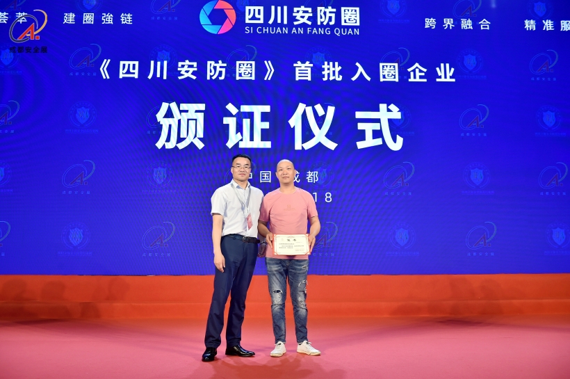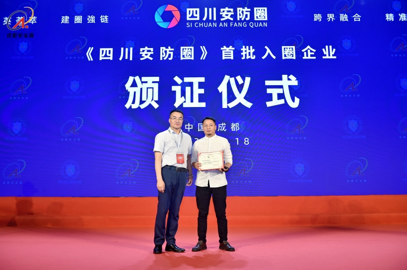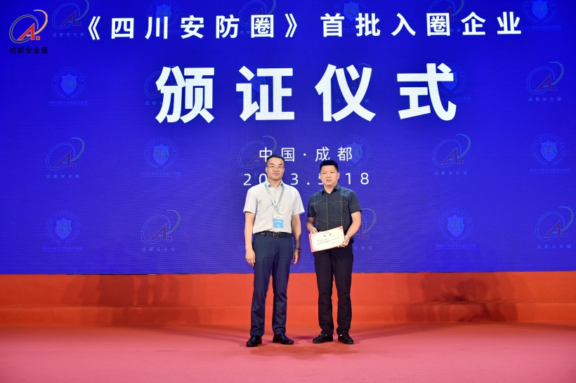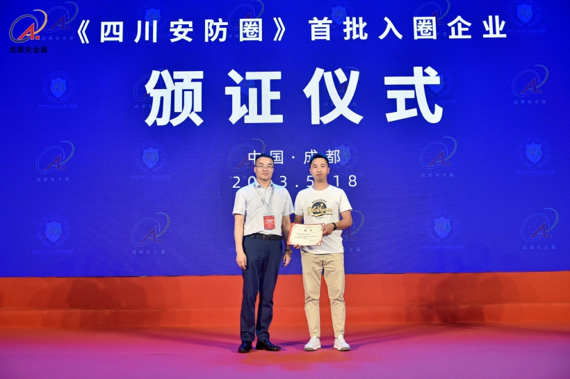 2023年5月18日下午,在成都國際安博會主論壇區,組委會主任石磊為各地市大安全相關行業企業頒發了“首批入圈會員證”。