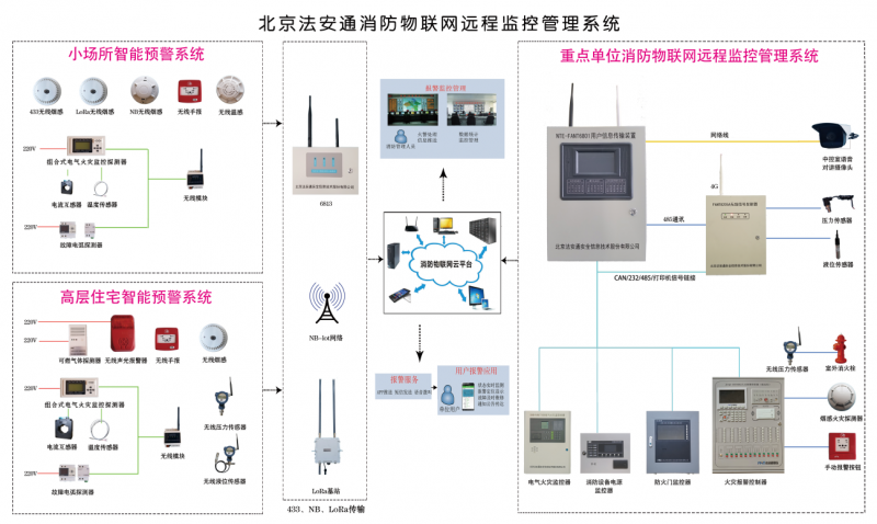 公司根據《城市消防遠程監控系統技術規范》 (GB50440-2007)及《城市消防遠程監控系統》(GB/T 26875-2011)的要求,自主開發了消防物聯網監控系統,在省級、地市級、行業級、高層住宅、小場所、家庭等項目中均得到了廣泛應用。