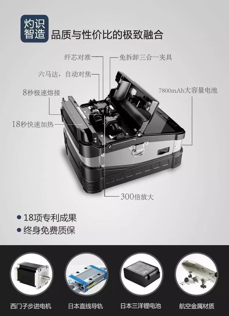 灼識光纖熔接機采用的是最新自動對焦、六馬達、纖芯對準技術,完全勝任干線,FTTH入戶、安防監控等光纖光纜熔接工程,機器采用工業CPU,響應速度快;5英寸高分辨率屏,操作圖形簡單直觀;6秒熔接,15秒加熱,工作效率相對于普通熔接機提高了50%;產品現已銷售到北美、南美、歐洲及東南亞數十個國家和地區,并獲得客戶的一致好評。