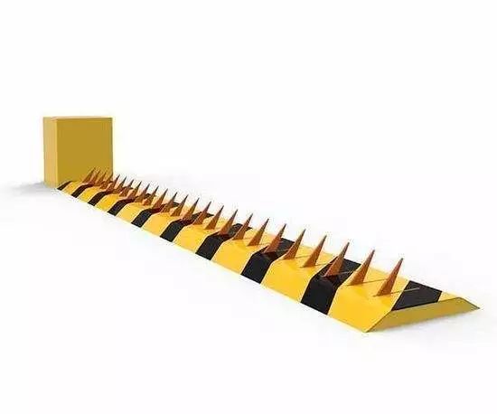 道刺路障的刺比較鋒利,車輛輪胎軋上以后會在0.5秒時間內被扎透并且通過泄氣孔將輪胎內氣體放空,導致車輛不能前行。因此,是一些重點安防場所必備的一款防恐路障。