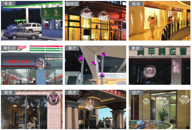 它應用于廣告傳媒、連鎖商超專賣、加油站、餐廳、美容店、酒店、咖啡店、地產;車站、機場、大型商場、科技館、展覽展示,公園、店鋪、酒吧、影院、地鐵進出口、路邊廣告位。