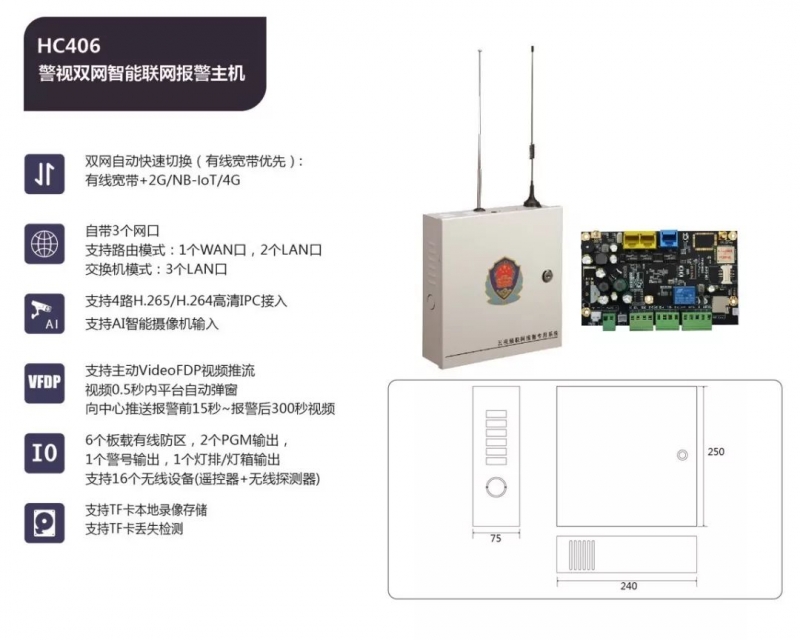 警視一體:全部主機均具有NVR、交換機、網(wǎng)關功能,4G型主機并具有4G路由器功能。