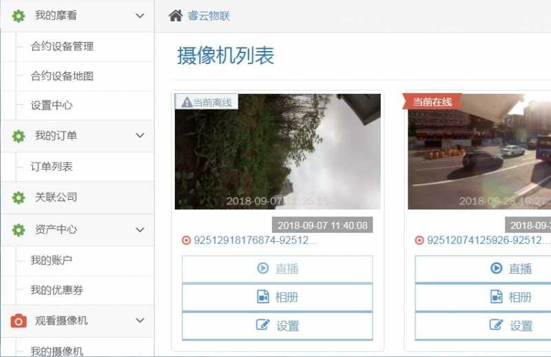 后臺管理功能齊全,在此頁面上用戶可對其所有設備按菜單進行管理。
