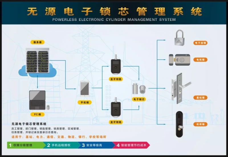 無源電子鎖芯管理系統廣泛應用于鐵塔基站、電力、公安、交通、物流、銀行等啞資源場所。