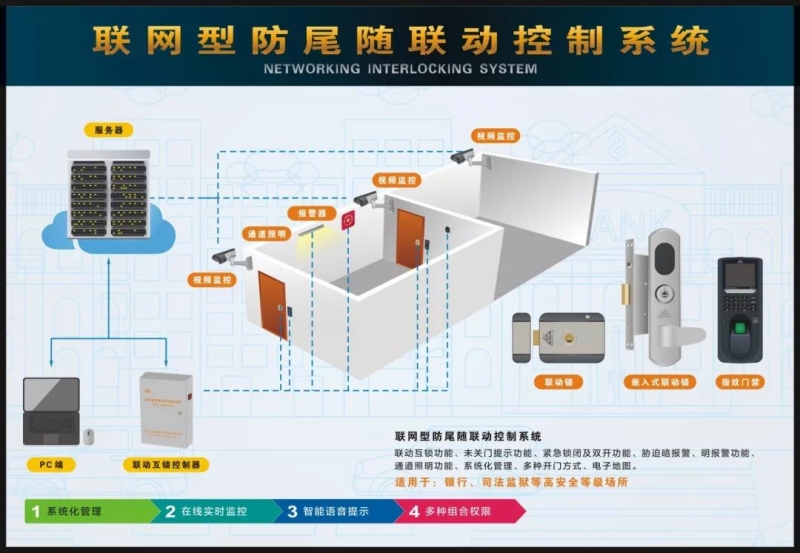聯動門控制系統是指系統中的兩道門具有互鎖聯動的功能,即當一道門被打開時,另一道門被鎖閉,只有當兩道門都關上時,通過身份驗證,才能打開其中的一道門。同時,AB門之間設立成通障緩沖區,帶有探測報警系統同時聯動視頻監控,試圖非法通過此區域者必將觸及本報警系統,未接近另一道門的情況下提前發現警情,從而進一步加強了尾隨盜竊、越獄的發生。