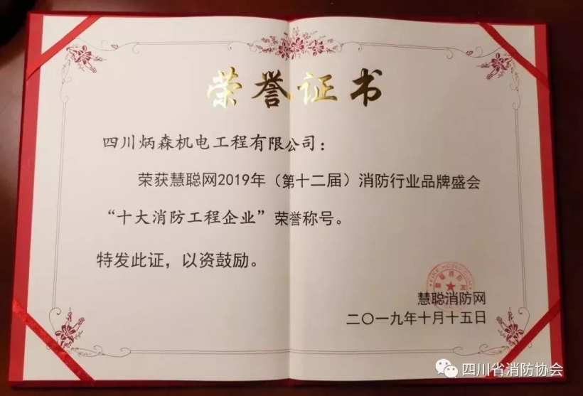 炳森企業(yè)榮獲“十大消防工程企業(yè)”榮譽(yù)稱號